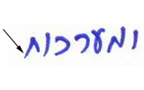 בדוגמא ג' היחס המשני שבאות ת', שבסוף המילה, מבצע שני מהלכים שונים. כאן, בניגוד לדוגמא א', לא קיימת צרות משנית. יחד עם זאת, חלקה השמאלי של ה-ת', זה שאמור להיראות כ- נ', מתחיל בירידה מגג האזור האמצעי אל עבר בסיס האזור האמצעי אך הוא "מתקפל" פנימה, ימינה, אל תוך עצמו, לפני שהוא יוצא שוב אל עבר השמאל ונחשף לחברה. הוא מסגיר תחושה פנימית של צורך במגננה, של התגוננות. ההתגוננות אינה מסתיימת בשלב זה אלא גם בצלצל שבסיום הקו שאינו נשאר "גלוי" מעל לבסיס השורה, אלא מקפל את ראשו ומגלה צורך לסגת, להכחיש, להתגונן. בנוסף לאלו ניתן לראות את האות ש' שהיא מתקפלת, משובללת ונסגרת בכבדות "מרכינת ראש".