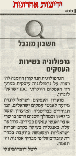 הגרפולוגית חנה קורן הוזמנה להרצות על גרפולוגיה עסקית במועדון העסקים היוקרתי IBC – ישראל – לונדון.