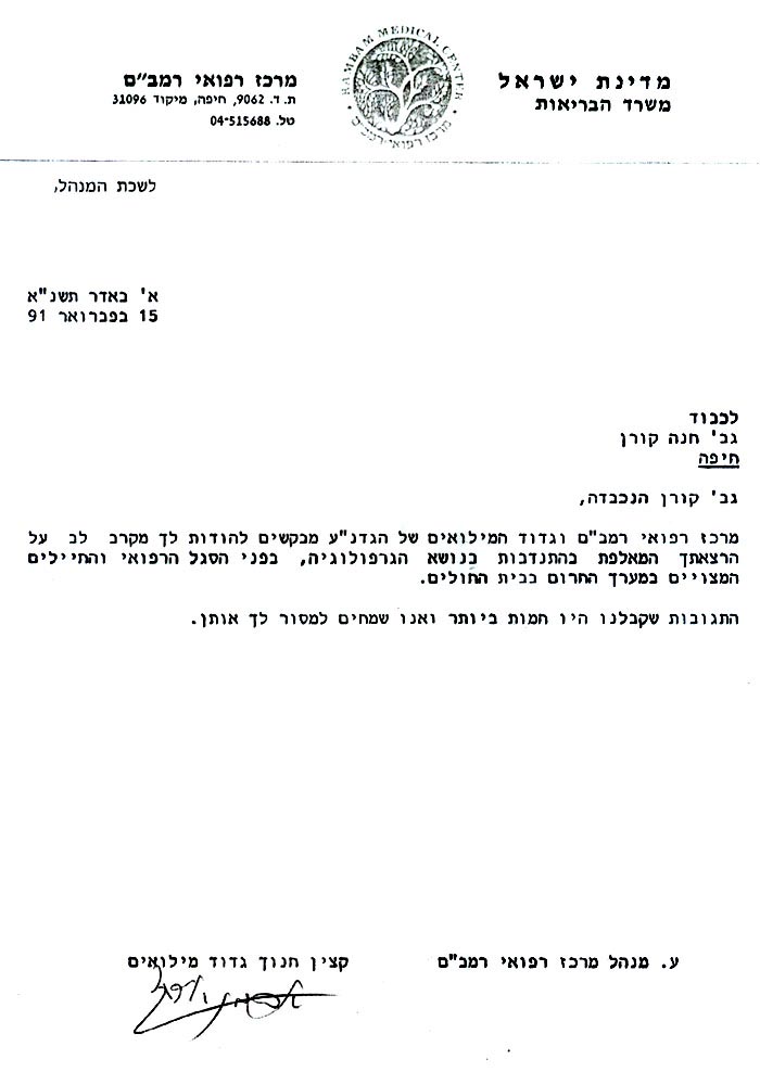 מרכז רפואי רמב״ם – פברואר 1991