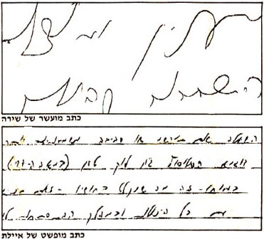 לפניכן שני סוגי כתב-יד. כתב ידה של שירה בולט בהעשרתו, ואילו כתב-ידה של איילת בולט בהפשטתו. כתב-יד מועשר מעיד על מוחצנות. אי-אפשר שלא להבחין בשירה כשהיא נכנסת לחדר. התנועות שלה בוודאי מוחצנות ומרשימות, ואילו איילת בוודאי שקטה, ביישנית ועדינה.