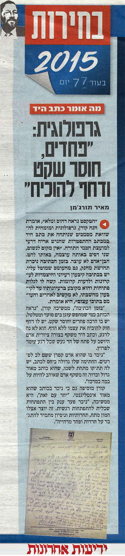 גרפולוגית חנה קורן: "פחדים, חוסר שקט ודחף להוכיח"